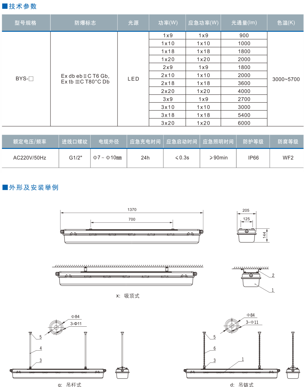 2.适用于ⅡA、ⅡB、ⅡC类爆炸性气体环境;