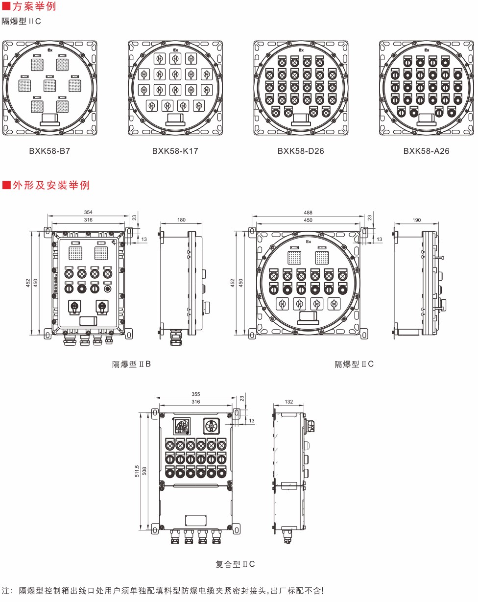 4.适用于ⅢA、ⅢB、ⅢC类爆炸性粉尘环境;